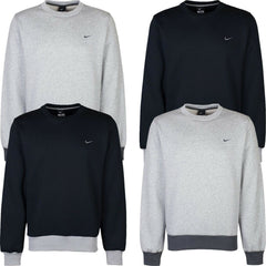 Nike Men's Club Crew Neck Sweatshirt Swoosh Fleece Long Sleeve Top - Black/Grey