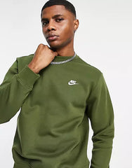 Nike club khaki crew neck sweatshirt features great quality soft cotton material, with fleece inside for that extra warmth. Matches perfectly with almost any outfit, to give a fashionable casual great look. This sweatshirt is perfect for casual chilling, any-weather sports activities and everyday lounging.