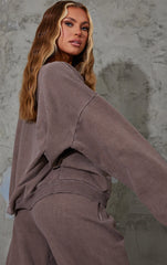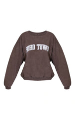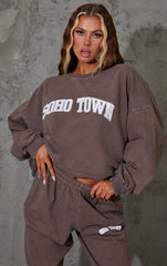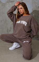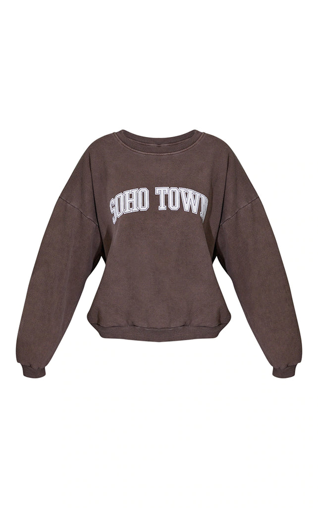 Amp up your off-duty look with this sweater. Featuring a chocolate brown with a 'Soho Town' print and an oversized fit. Team with the matching comfy bottoms, minimal accessories and chunky kicks to finish the look.