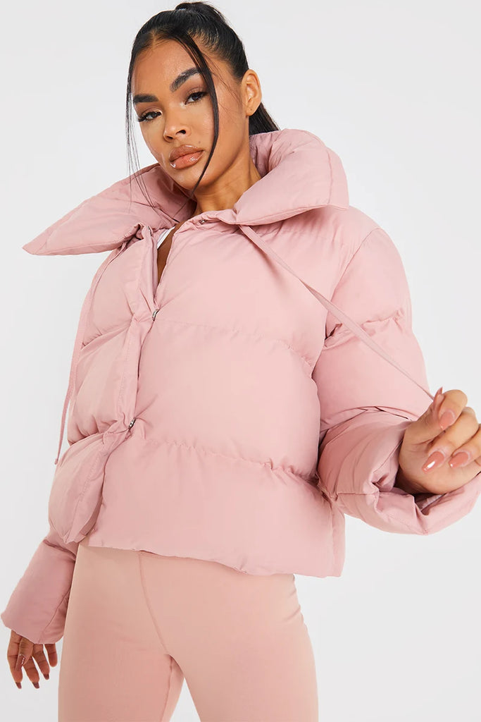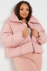 In The Style Billie Faiers Nude Short Cropped Puffer Jacket