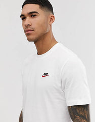 Nike club white crew neck tee features great quality soft cotton material. Matches perfectly with almost any outfit, to give a fashionable casual great look. This tee is perfect for casual chilling, cool-weather sports activities and everyday workouts.