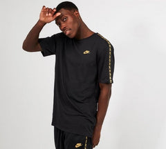 Nike tapered repeat tee for that laid-back look, with loads of style. Tapered design on both sleeves for that unique look, finished with the iconic Nke logo on front chest. Choice of Black/Gold and White/Black